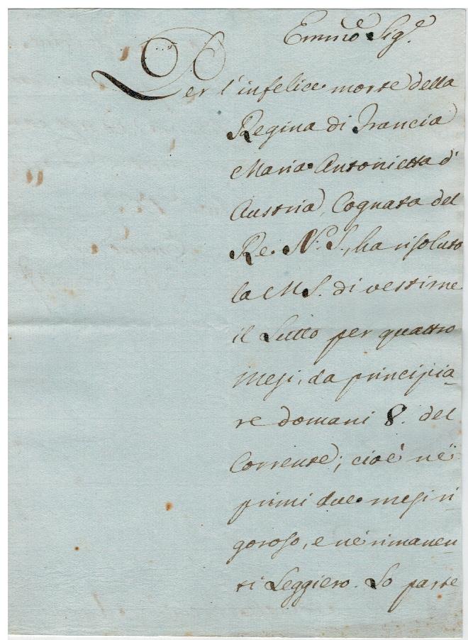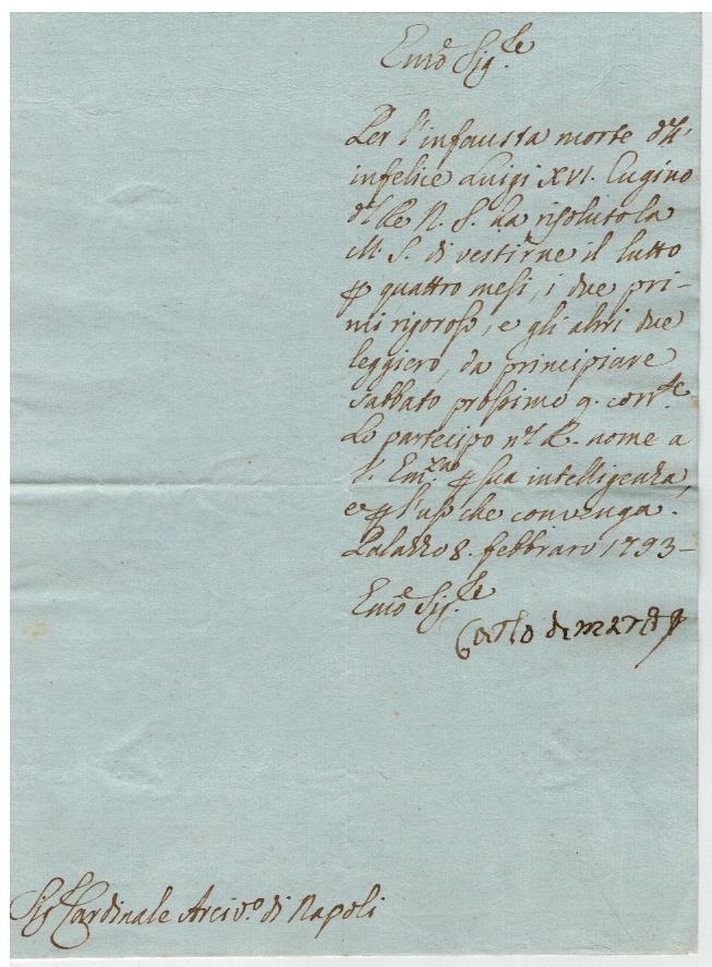 Lutti della R. Corte di Napoli partecipati di ufficio agli arcivescovi: Morte dei sovrani di Francia, Maria Antonietta e Lugi XVI